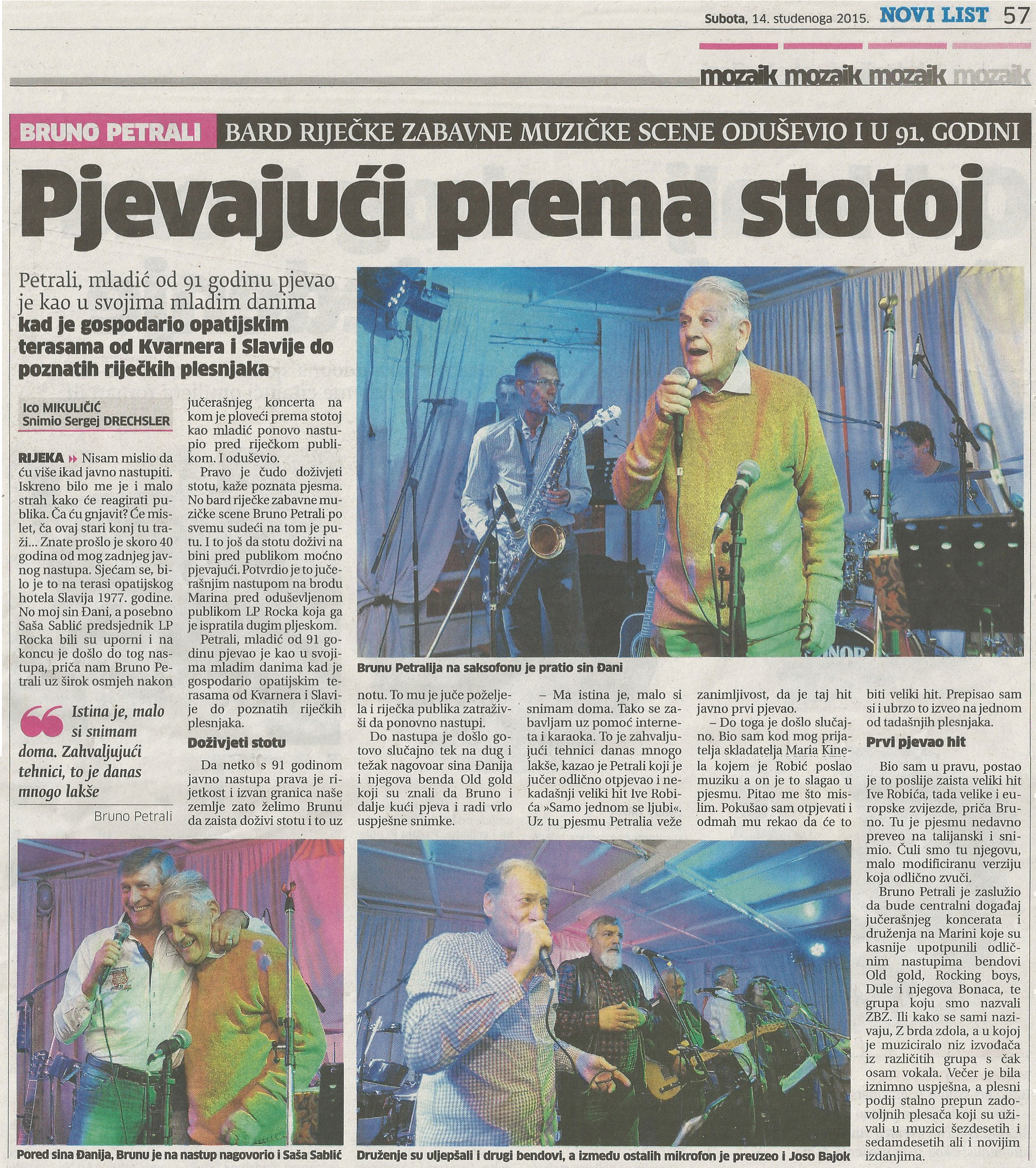 Gostujući nastup na Marini g. Bruna Petralia, radijskog voditelja, glumca, najstarijeg hrvatskog pjevača.